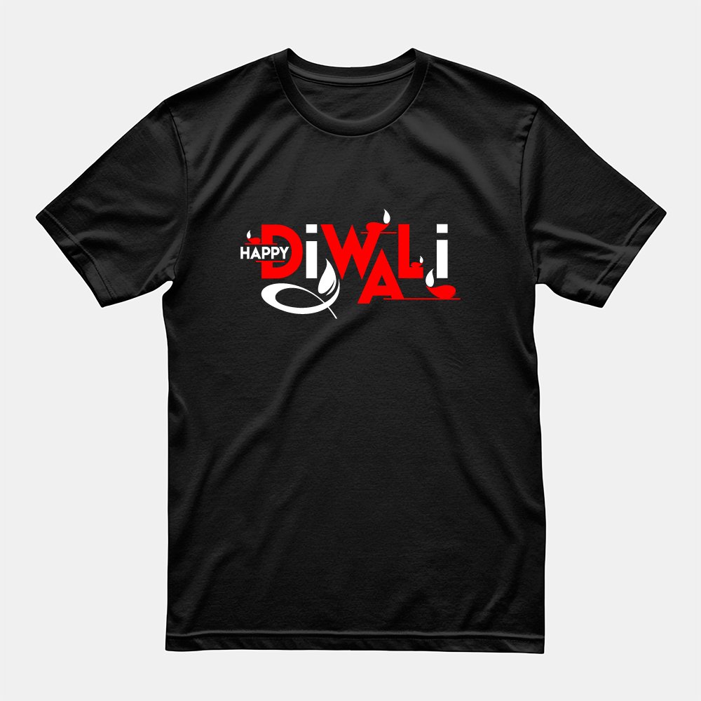 Happy Diwali Typography T-shirt Black Cotton Tee For Men and Women TG1