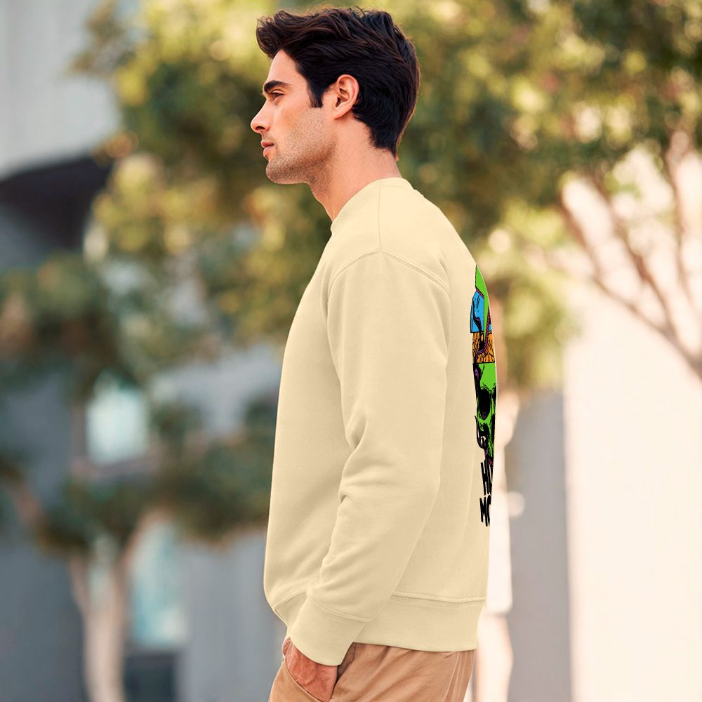 Human Monster Men’s Sweatshirt Winter Wear Premium Beige French Terry Cotton Full Sleeve