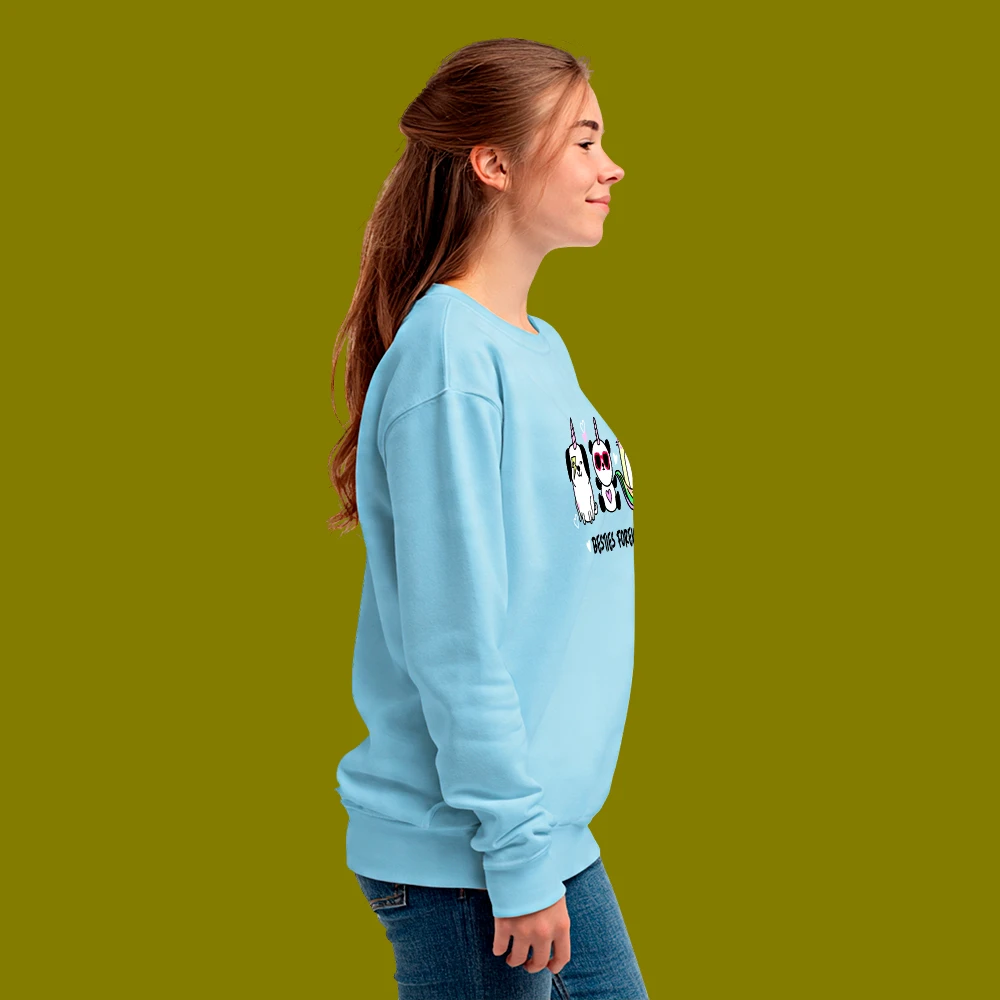 Women’s Cartoon Print Winter Sweatshirt | Besties Forever Design | Cozy & Cute